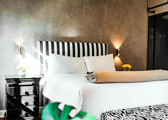 Das 750 m^2 große Apartment Black Chili Maboneng Luxury Stay Johannesburg liegt im Stadtteil Johannesburg Stadtzentrum von Johannesburg, in einer Entfernung von 17 Autominuten vom Flughafen Rand. Autos können Sie hier auch mieten.